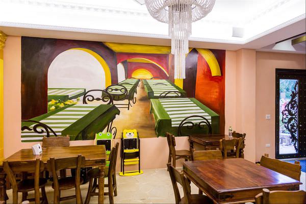 用餐餐廳也是老闆設計,透過濃豔色彩油畫,打造出異鄉國度風格,一切都其手工設計、打造為訴求,希望旅客能有更深的體會。